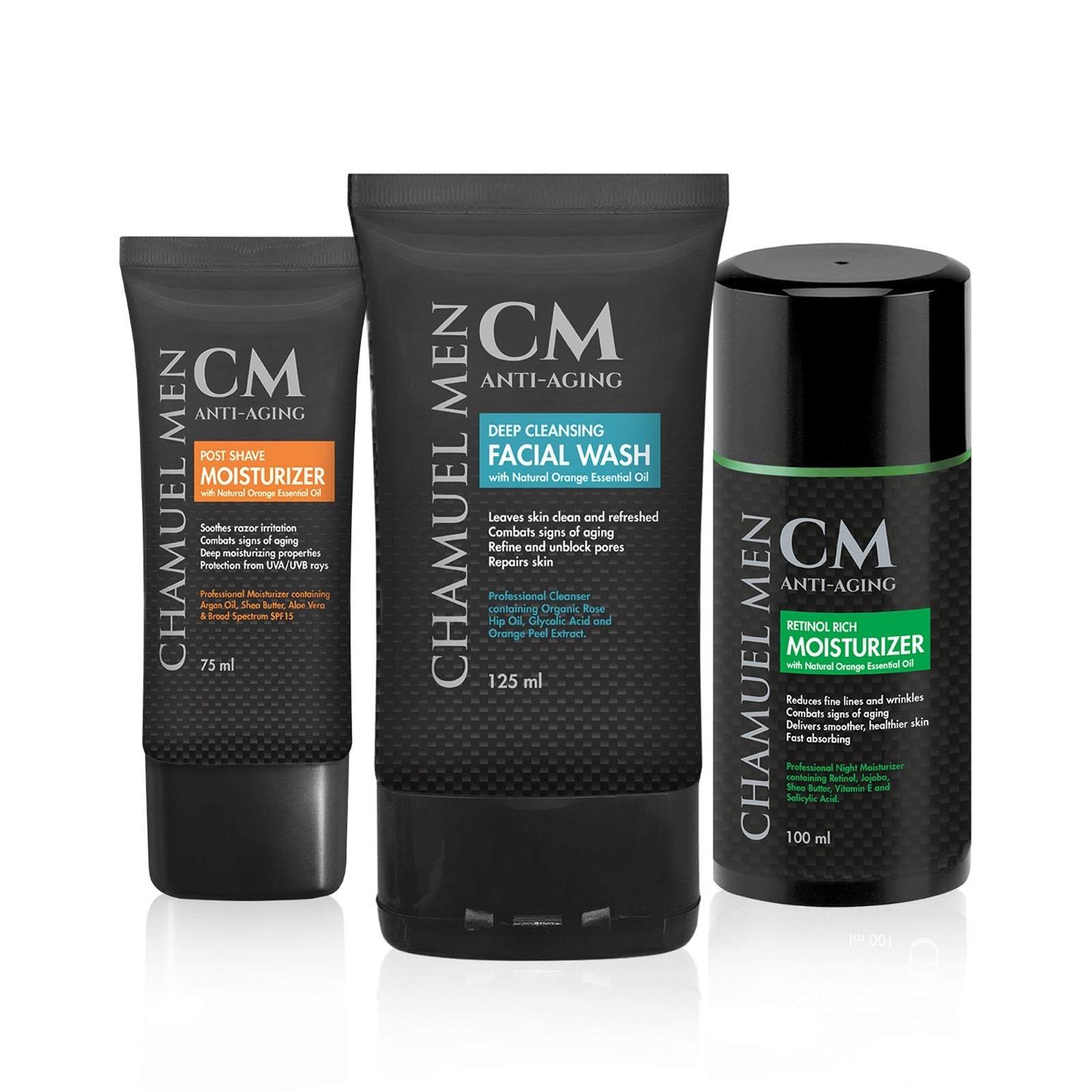 Chamuel Men revolutionizes skincare for men with its three essential products: a deep-cleaning facial wash, a post-shave moisturizer, and a retinol-rich moisturizer. These targeted solutions ensure effective cleansing, post-shave comfort, and advanced anti-aging benefits. With a commitment to natural ingredients and simplified routines, Chamuel Men enables men to take control of their skin health, breaking free from complex routines and embracing a straightforward, masculine approach to skincare.